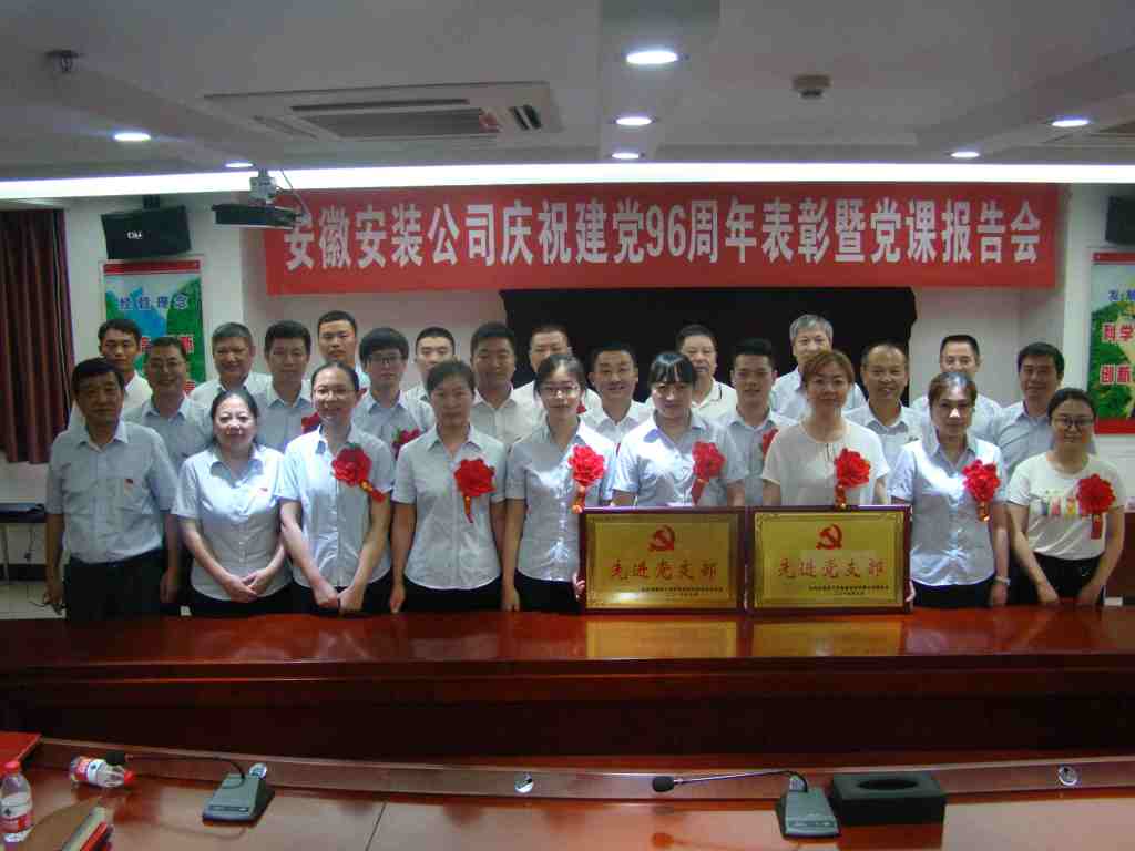 6月29日下午,安徽安裝公司召開慶祝建黨96周年表彰大會(huì)暨“七一”專題黨課活動(dòng),公司領(lǐng)導(dǎo)班子、在肥在崗黨員、入黨積極分子以及受表彰的先進(jìn)集體、先進(jìn)個(gè)人等60余人參加了會(huì)議。會(huì)議由公司董事長(zhǎng)、總經(jīng)理、黨委副書記王軍邦主持。