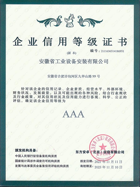AAA信用等級證書