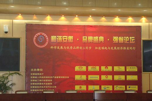 為推進(jìn)品牌強省戰(zhàn)略,加快安徽省品牌的發(fā)展步伐,實現(xiàn)安徽經(jīng)濟全面和諧發(fā)展,由安徽省商務(wù)廳、安徽省人民政府國有資產(chǎn)監(jiān)督管理委員會、安徽省工商行政管理局、安徽省質(zhì)量技術(shù)監(jiān)督局、安徽省經(jīng)濟技術(shù)協(xié)作辦公室和安徽省科學(xué)家企業(yè)家協(xié)會聯(lián)合舉辦的“和諧安徽·品牌盛典·強省論壇”活動,于2009年7月28日在省人大會議中心隆重召開。本次論壇以“科學(xué)發(fā)展與優(yōu)秀品牌創(chuàng)立同步,加速崛起與發(fā)展經(jīng)濟強省同行”為主題。公司總經(jīng)理王軍邦先生應(yīng)邀參加論壇活動。