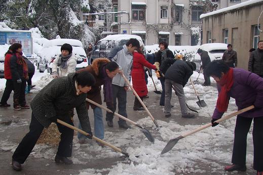 17日一早,在公司領(lǐng)導(dǎo)的親自帶領(lǐng)下,公司機(jī)關(guān)全體員工踴躍參與,懷著一份熱情,積極鏟雪除冰。經(jīng)過近兩個小時的奮戰(zhàn),將公司辦公樓及生活區(qū)大院的主干道積雪和冰塊鏟掃干凈,確保廣大職工和住戶的出行安全。