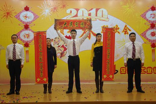 公司王軍邦總經(jīng)理代表公司黨政領(lǐng)導(dǎo)班子致新年賀詞,感謝一年來上級領(lǐng)導(dǎo)的大力支持和關(guān)懷,感謝全體員工的辛勤付出和熱愛。伴隨著優(yōu)美的旋律,聯(lián)歡會在舞蹈《好運(yùn)來》中正式拉開序幕,火紅的扇子,舞出了我們共同的期盼;詩朗誦《承諾》,聲情并茂、鏗鏘有力的述說了省安三年來發(fā)生的巨大變化和取得的輝煌成績,博得了在場觀眾的陣陣掌聲。安慶分公司的戲劇小品《比翼雙飛》與合肥項(xiàng)目部的男聲獨(dú)唱《恭喜發(fā)財(cái)》同獲一等獎,蚌埠分公司的說唱《三載巨變展新貌》和經(jīng)理辦的小品《昨天今天 明天》同獲二等獎。