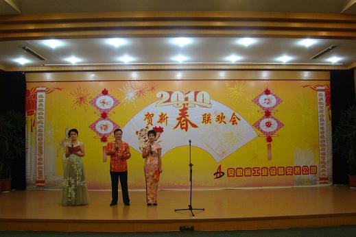 2月6日下午,公司2010年春節(jié)聯(lián)歡會在八一賓館隆重舉行。建設(shè)廳副廳長王茂新、集團(tuán)公司副董事長李長斌、副總經(jīng)理戴良軍、鄭德堯、王元曦、王禮義以及集團(tuán)各部門負(fù)責(zé)人、公司黨政領(lǐng)導(dǎo)班子集體、各合作單位領(lǐng)導(dǎo)等,與公司全體新老員工和家屬歡聚一堂,共度新春佳節(jié)。
