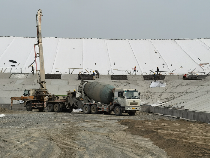壩體混凝土面板澆筑施工現(xiàn)場