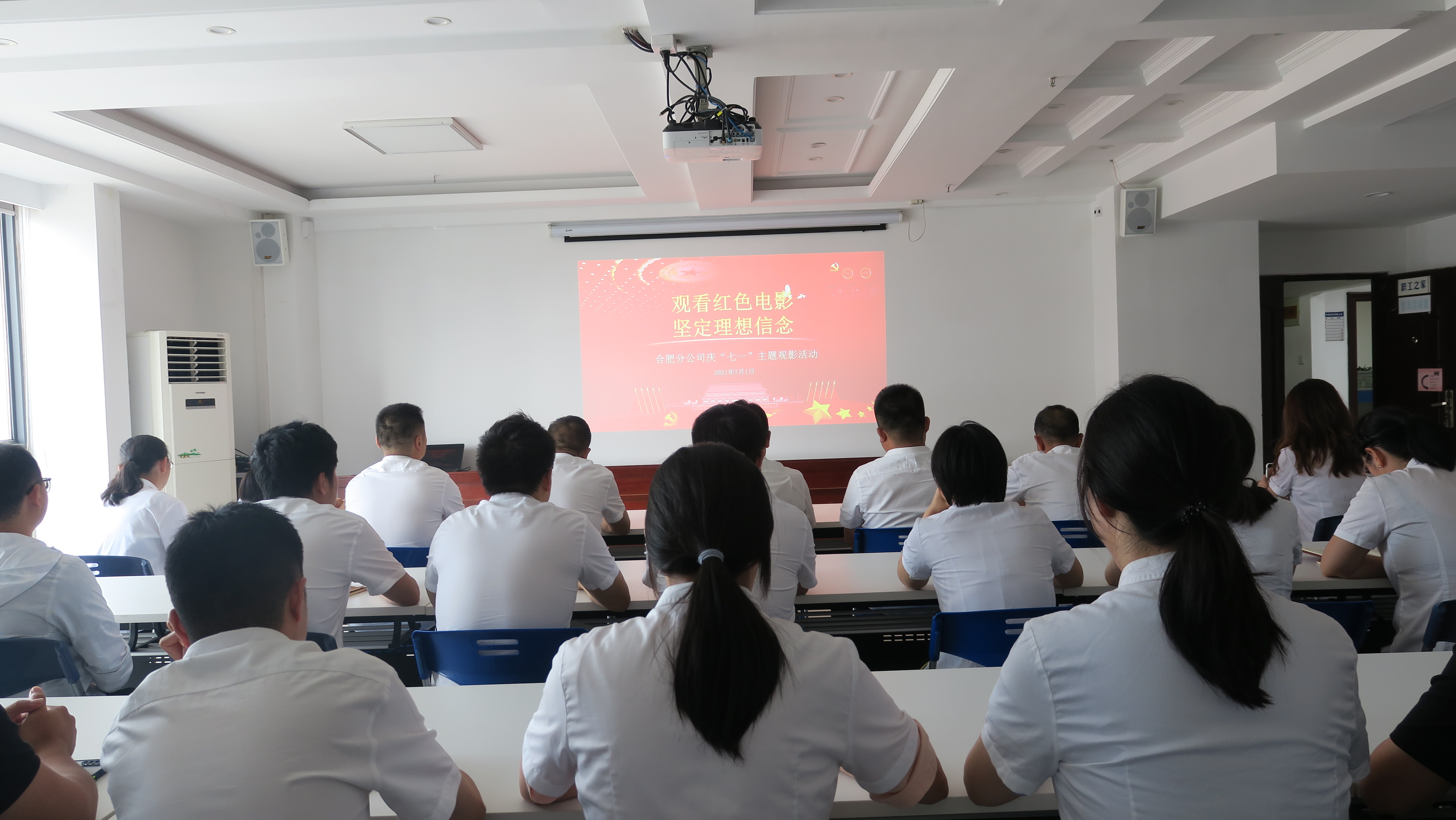 在慶祝中國共產(chǎn)黨成立100周年之際,為傳承紅色基因,激揚(yáng)新時代奮斗精神,進(jìn)一步激發(fā)廣大黨員干部職工的愛國愛黨熱情,把黨史學(xué)習(xí)教育引向深入,7月1日下午,合肥分公司黨支部組織在肥黨員、機(jī)關(guān)員工以及靈璧項(xiàng)目臨時黨支部聯(lián)合開展了“觀看紅色電影 堅定理想信念”主題觀影活動,大家共同觀看了黨史教育片《建黨偉業(yè)》,重溫紅色經(jīng)典,牢記初心使命。