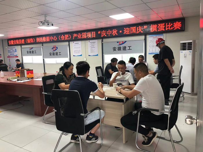 9月20日下午,房建(裝飾)分公司潤迅數(shù)據(jù)中心(合肥)產(chǎn)業(yè)園項目舉辦了“歡樂中秋·喜迎國慶”摜蛋比賽。比賽以抽簽的形式組隊,4人分為一組開始PK,采用淘汰制的方式進行,每輪比賽采用一局決勝。比賽中,選手們充分發(fā)揮“友誼第一,比賽第二”的體育精神,賽出了智慧,比出了水平。