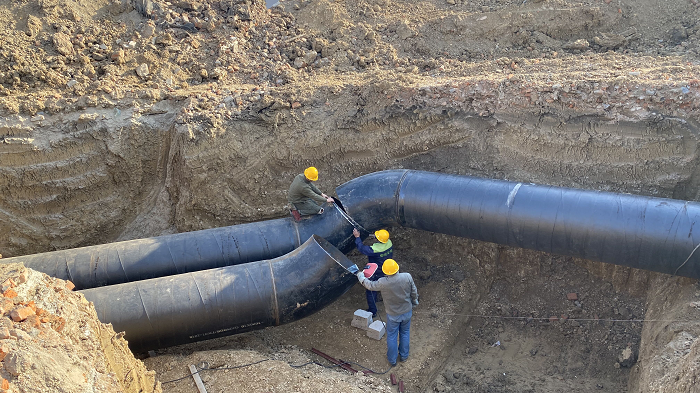 工藝管道班組也在忙忙碌碌,壓縮空氣管道在不斷架設(shè),料場(chǎng)加工好的管道在吊車、葫蘆的牽引下就位,專業(yè)的焊工進(jìn)行焊接,慢工出細(xì)活,保證每一道焊口符合規(guī)范要求,室外的循環(huán)水管也在與老廠的接口緊張對(duì)接。