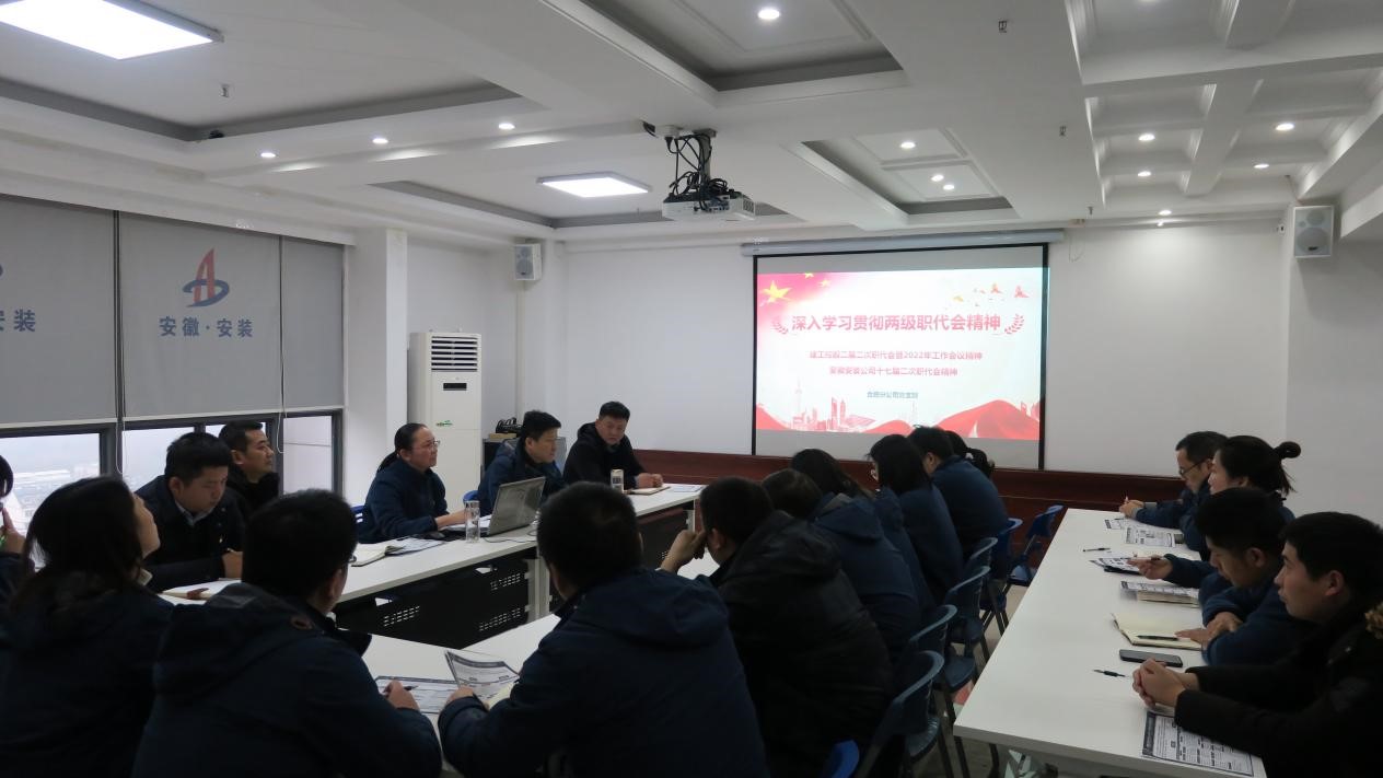 通過(guò)對(duì)兩級(jí)職代會(huì)精神的宣貫,使大家對(duì)集團(tuán)和公司2021年取得的可喜成績(jī)有了深刻的了解,也進(jìn)一步明確了2022年各項(xiàng)工作的思路、奮斗目標(biāo)和工作重點(diǎn)。在學(xué)習(xí)中,公司總經(jīng)理助理、合肥分公司黨支部書記、經(jīng)理趙永峰還結(jié)合分公司實(shí)際進(jìn)一步解讀了分公司2022年各項(xiàng)工作任務(wù)和目標(biāo),圍繞著公司職代會(huì)提出的“以項(xiàng)目管理年為抓手,堅(jiān)持穩(wěn)中求進(jìn),深化改革創(chuàng)新,加快轉(zhuǎn)型升級(jí),著力提質(zhì)增效”等重點(diǎn)工作談了自己的切身體會(huì)。