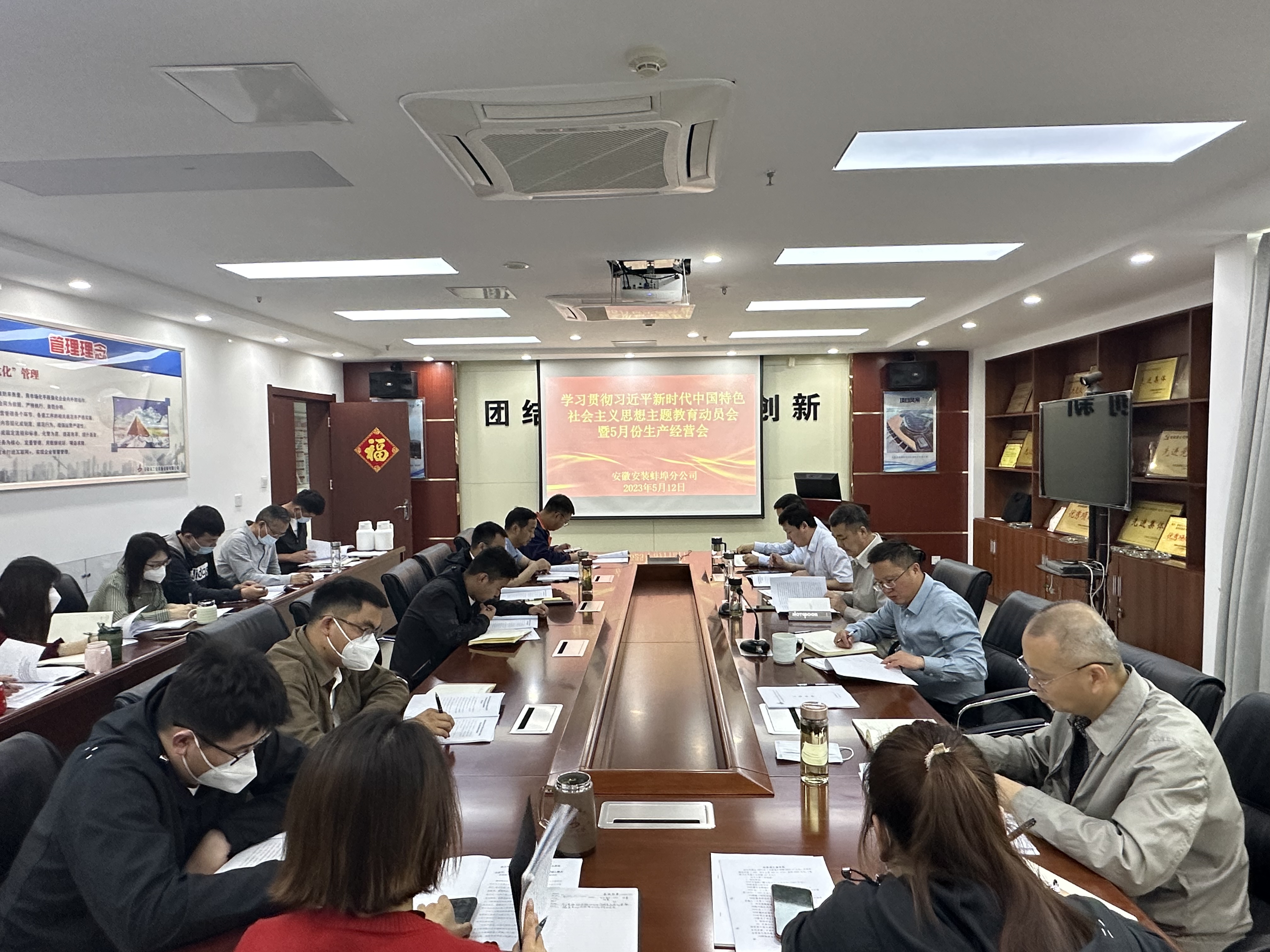 5月12日上午,蚌埠分公司召開(kāi)學(xué)習(xí)貫徹習(xí)近平新時(shí)代中國(guó)特色社會(huì)主義思想主題教育動(dòng)員會(huì)暨5月份生產(chǎn)經(jīng)營(yíng)會(huì),公司紀(jì)委書(shū)記、工會(huì)主席李楊應(yīng)邀出席會(huì)議,分公司領(lǐng)導(dǎo)班子成員、各項(xiàng)目主要負(fù)責(zé)人、機(jī)關(guān)各部門負(fù)責(zé)人及工程管理部全體員工參加會(huì)議,會(huì)議由分公司黨支部書(shū)記、副經(jīng)理王偉主持。